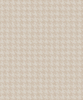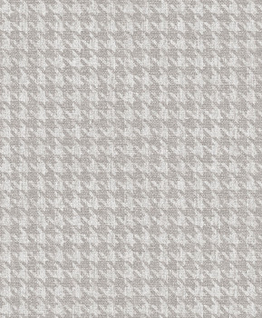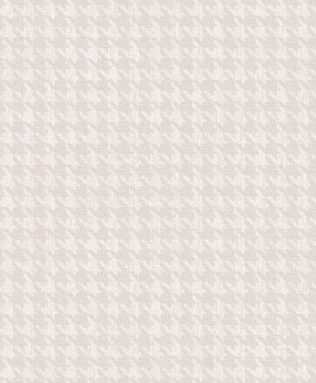 Finely textured white non-woven wallpaper, fabric imitation, rooster foot pattern in shades of white matte and pearl glossy.