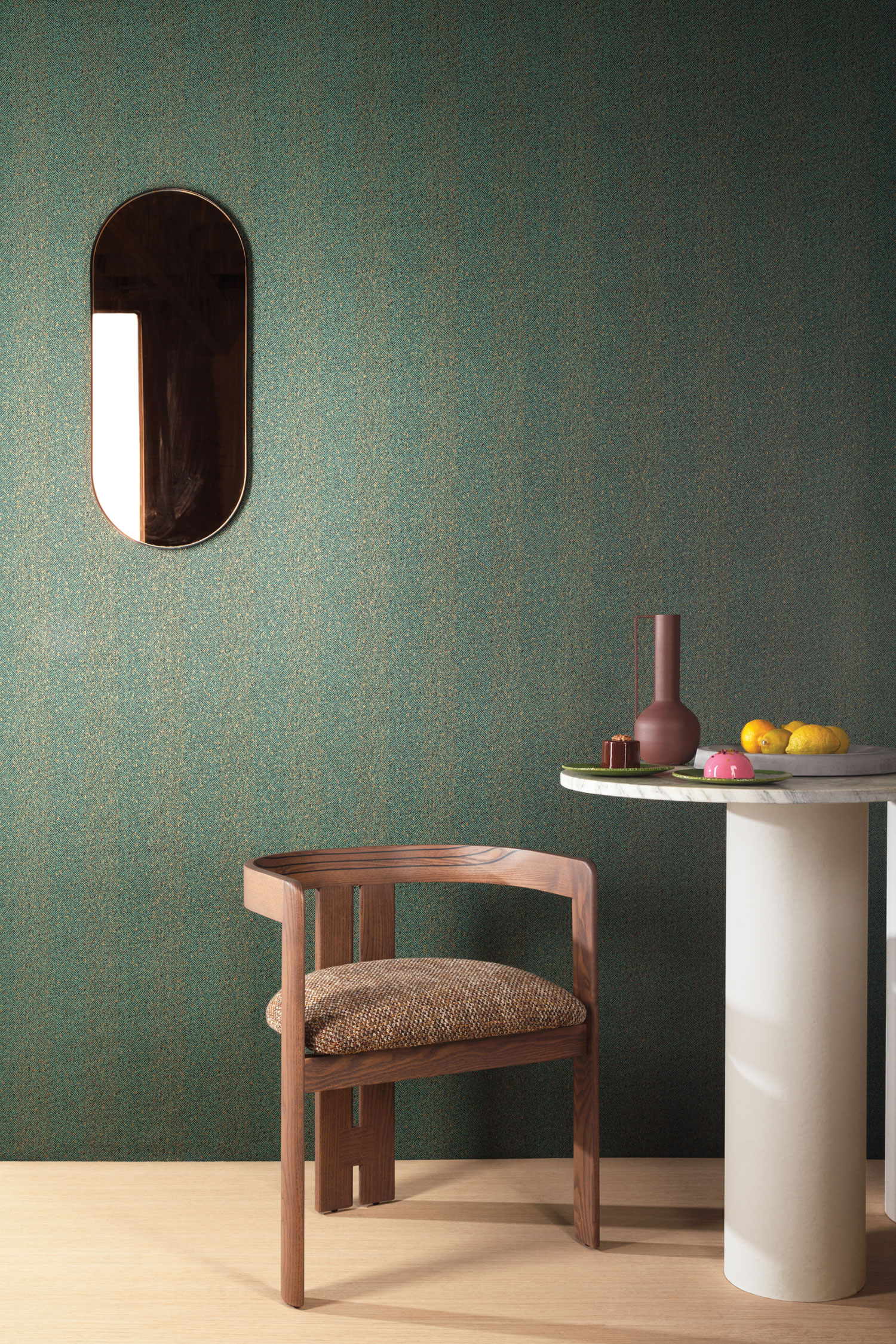 Green-gold wallpaper, imitation tweed striped fabric, ILA603, Aquila, Khroma by Masureel