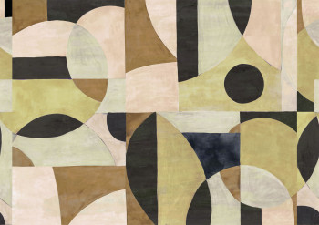 Non-woven wall mural, geometric pattern, shades of brown, grey-beige, pink, green and black. A design wall mural will make your interior cozy and create a pleasant atmosphere.