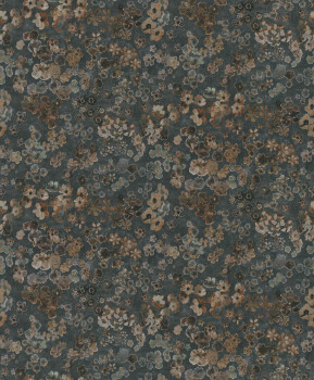 Grey-black non-woven wallpaper with a vinyl surface, flower pattern in shades of green, blue, pink, coarser fabric texture.