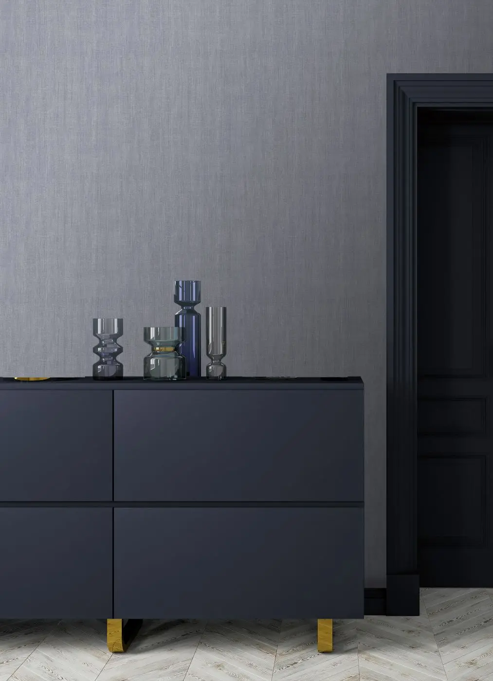 Dark blue non-woven wallpaper with vinyl surface, fabric imitation.