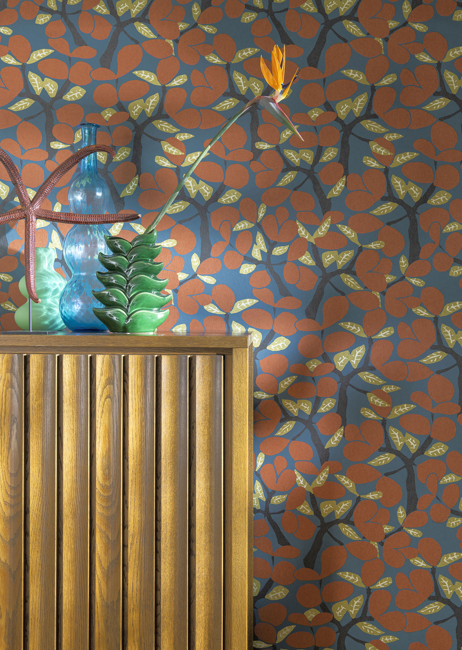 Blue-orange wallpaper, twigs, trees, BA26053, Brazil, Decoprint