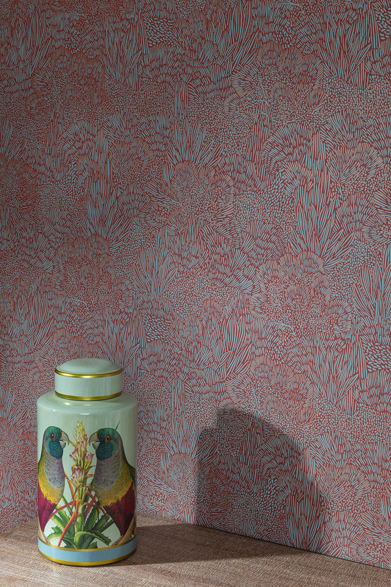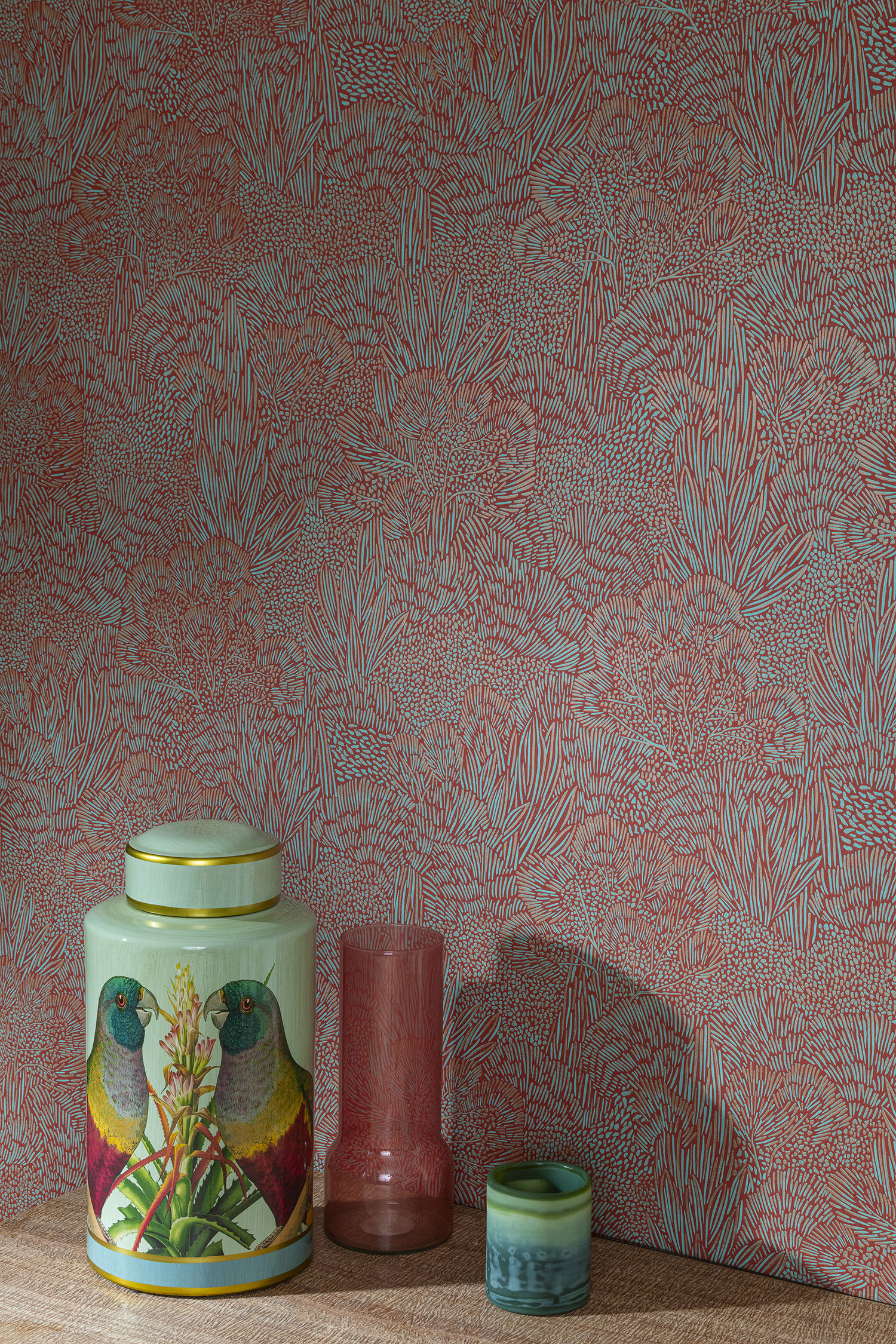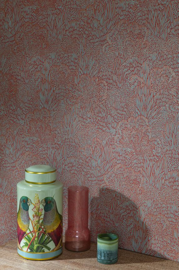 Turquoise-red wallpaper, landscape, trees, BA26063, Brazil, Decoprint