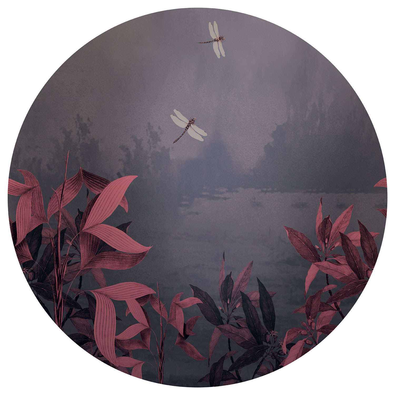 Pre-pasted circular non-woven wallpaper, Dragonflies, PLC044, Platinum Shapes, Decoprint