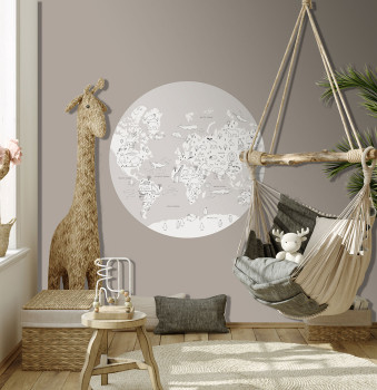 Pre-pasted non-woven wall decoration -World Map. The decoration has an adhesive on the back that is activated by applying water.