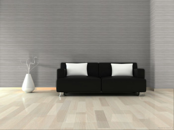 Coarsely textured non-woven wallpaper with vinyl surface, gray background,silver embossed lines.