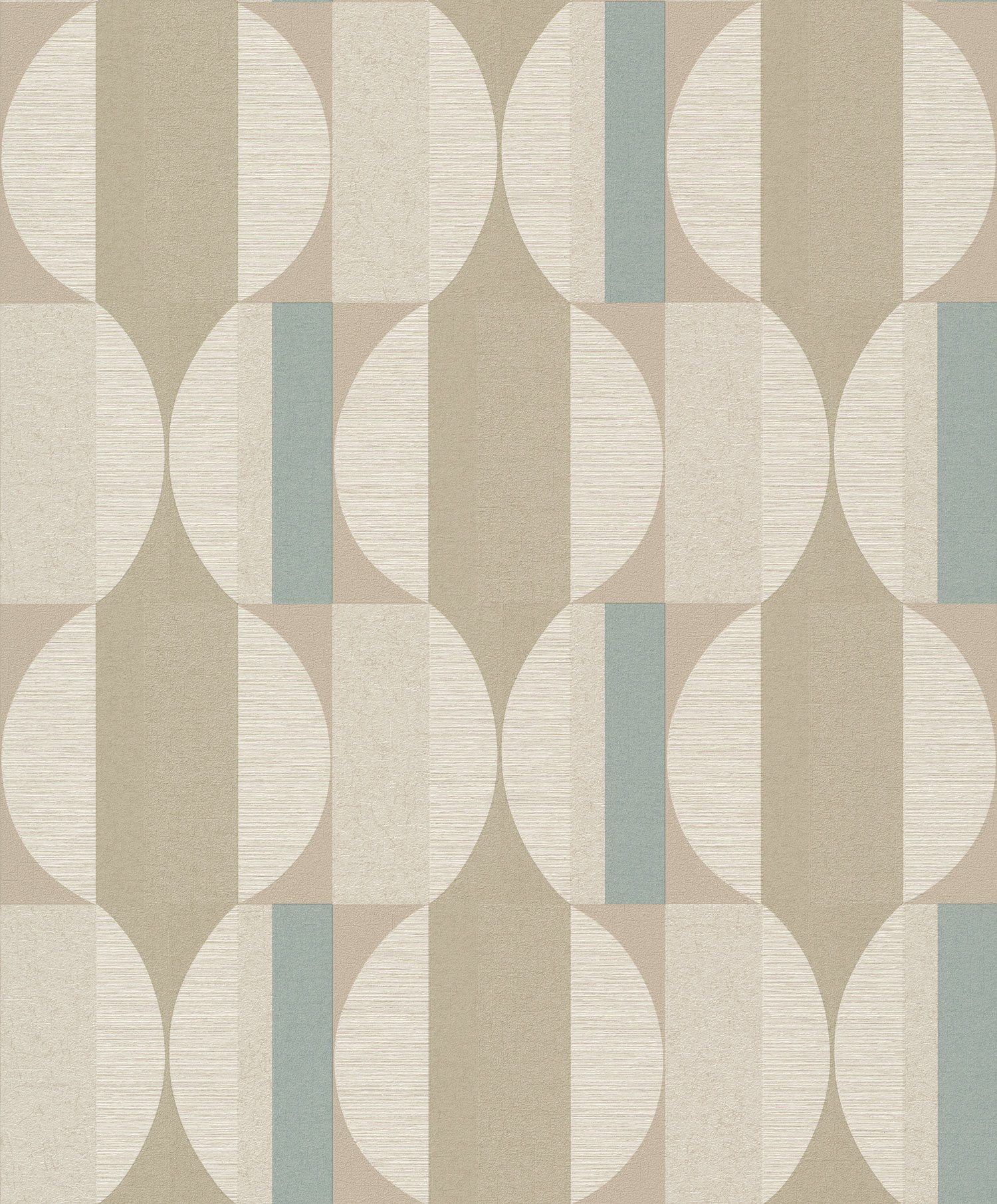 Geometric non-woven wallpaper with vinyl surface - alternating gloss and matt, smooth and textured surfaces, shades of beige, brown and green. Interior photo is for illustration only.