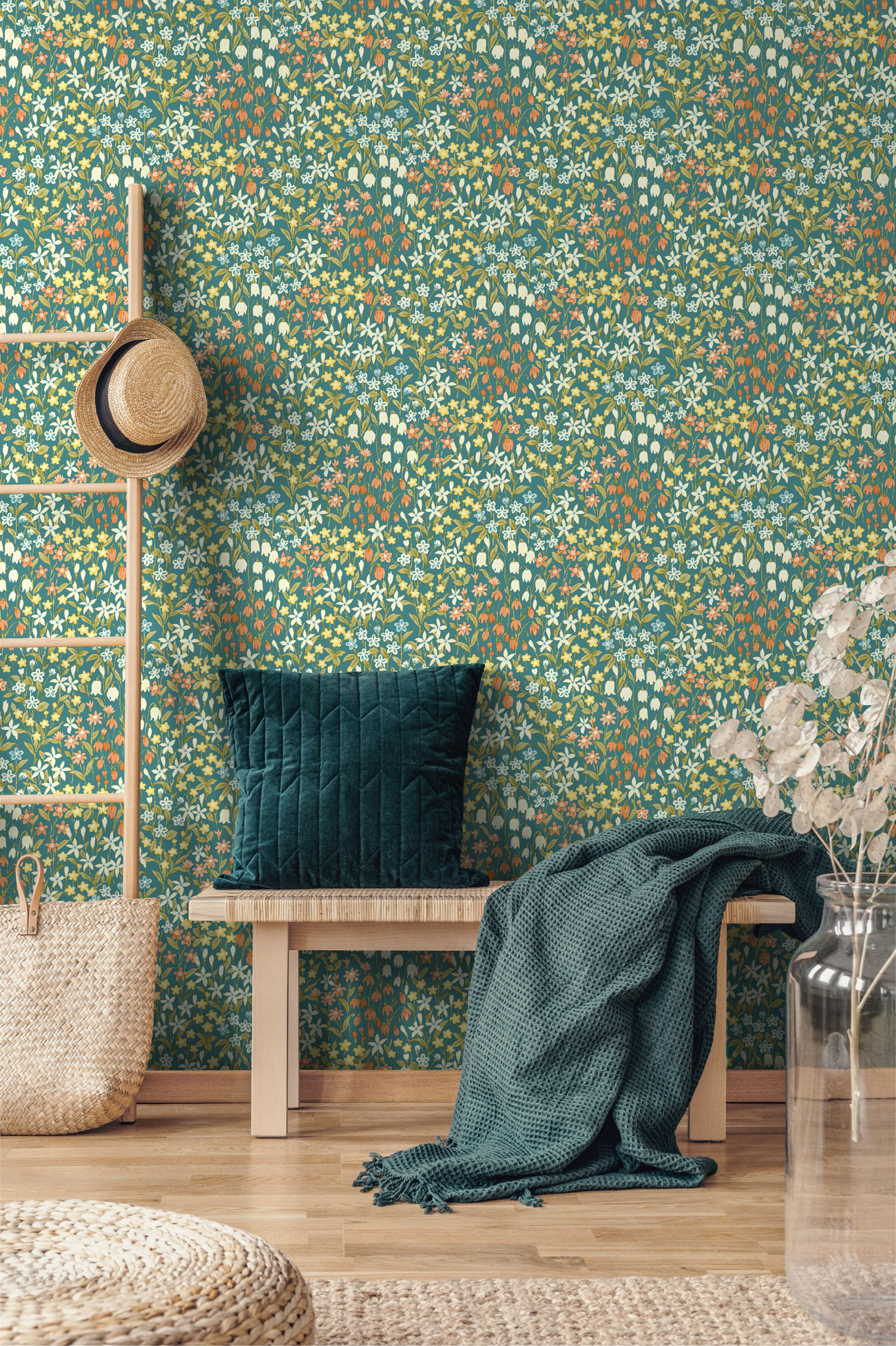 If you're a nature lover, you'll love the wallpaper with herons in a mysterious plant corner. For romantic souls, there is wallpaper with delicate meadow flowers or with a tree avenue patter.
