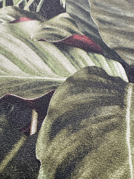Green non-woven wallpaper, leaves, jungle.