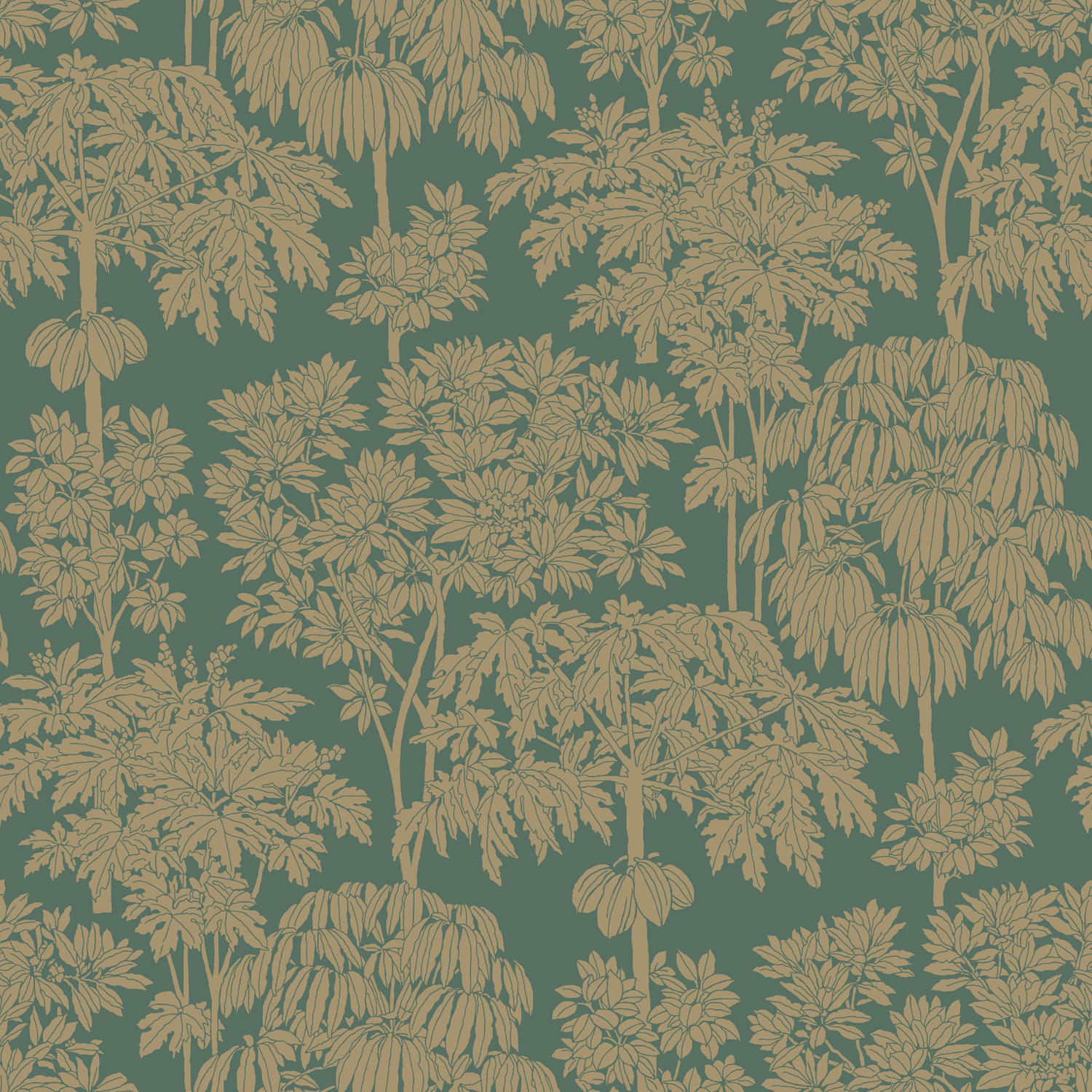 Green wallpaper with golden trees, A63403, Ciara, Grandeco