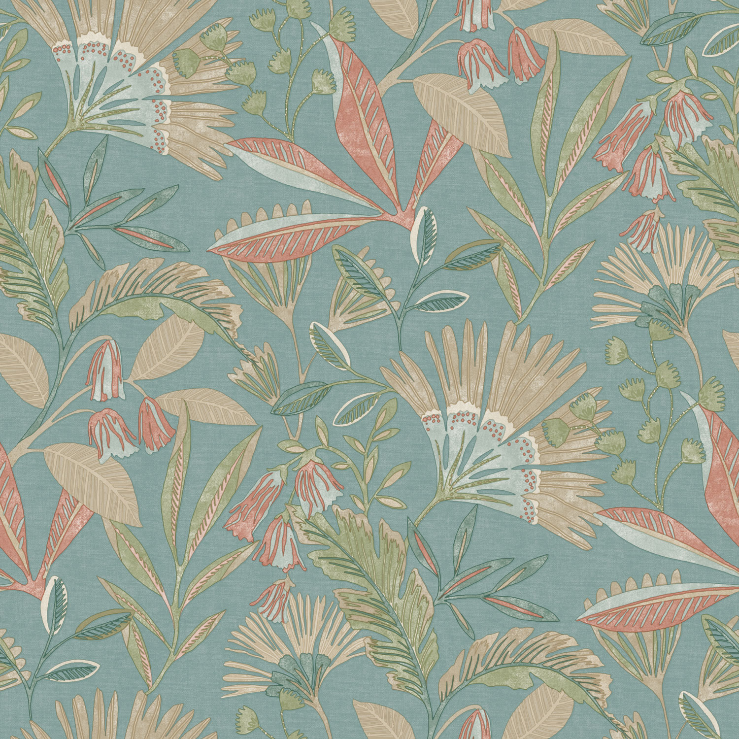 Green wallpaper, flowers and leaves, A63802, Vavex 2025