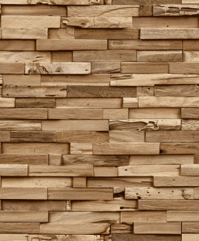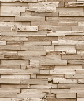 Non-woven wallpaper imitation of wood, wood paneling, sand texture.
