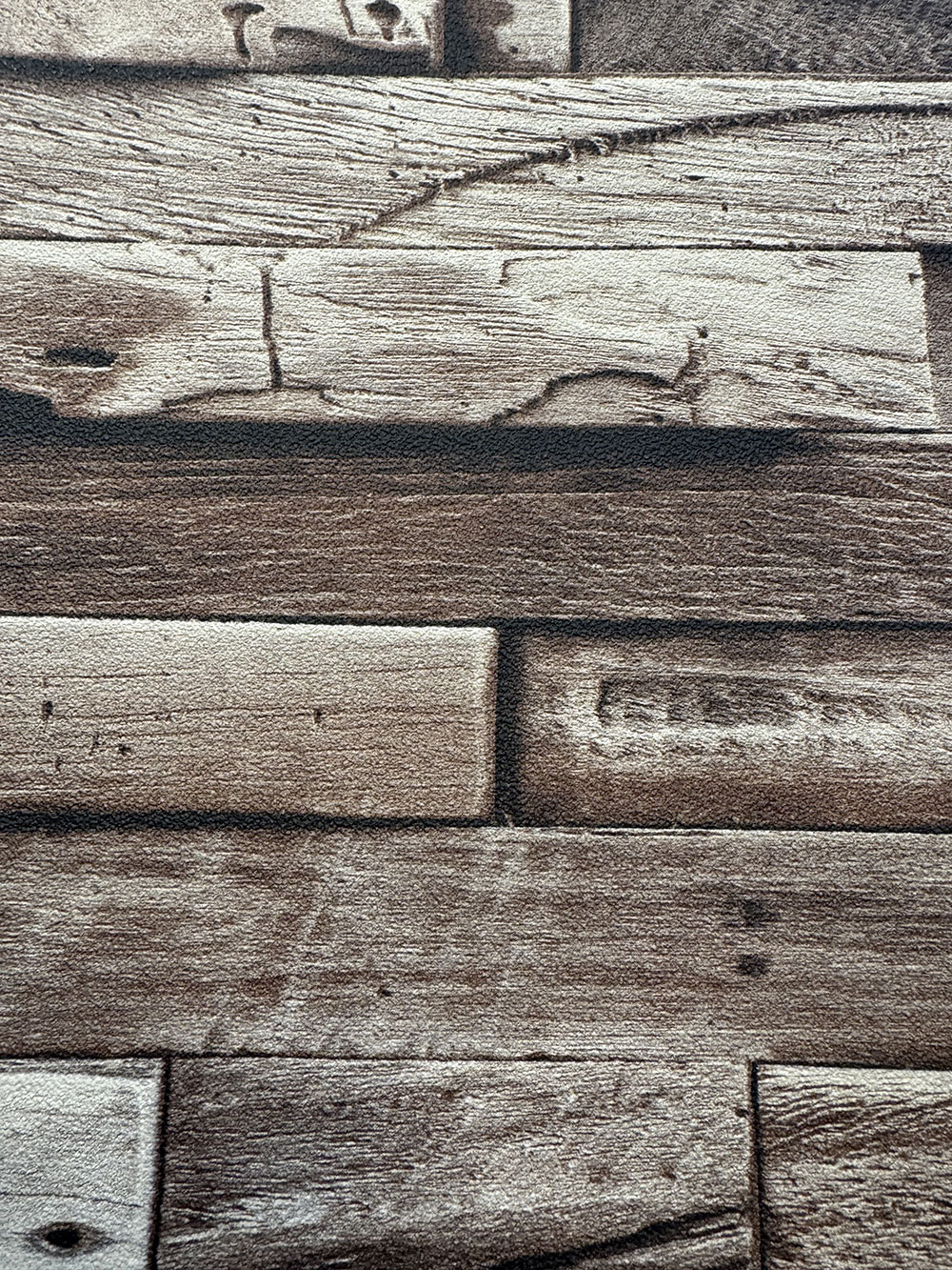 Non-woven wallpaper imitation of wood, wood paneling, sand texture.