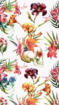 Unusual non-woven wall mural, flowers, skulls. The wallpaper has a continuous pattern, for a larger width you just need to buy another piece. 3 panels 0.53 x 2.8 m