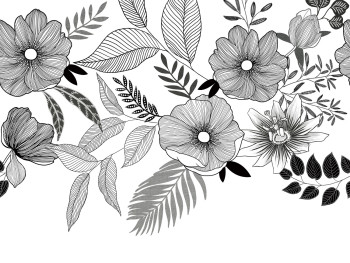 Black and white wall mural with flowers, ML6701, Mural Young Edition, Grandeco