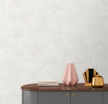 Gray-cream non-woven wallpaper with vinyl surface and coarser fabric texture.