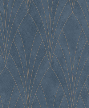 Navy blue non-woven wallpaper with vinyl surface, Art Deco style pattern, metallic shiny metallic lines.