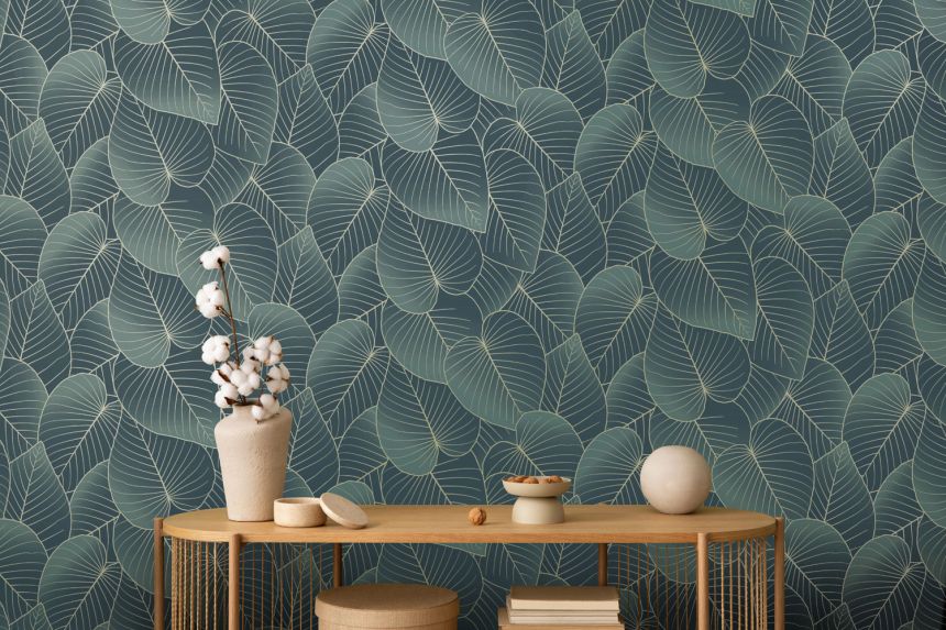 Metallic wallpaper, leaves, M69807, Botanique, Ugepa