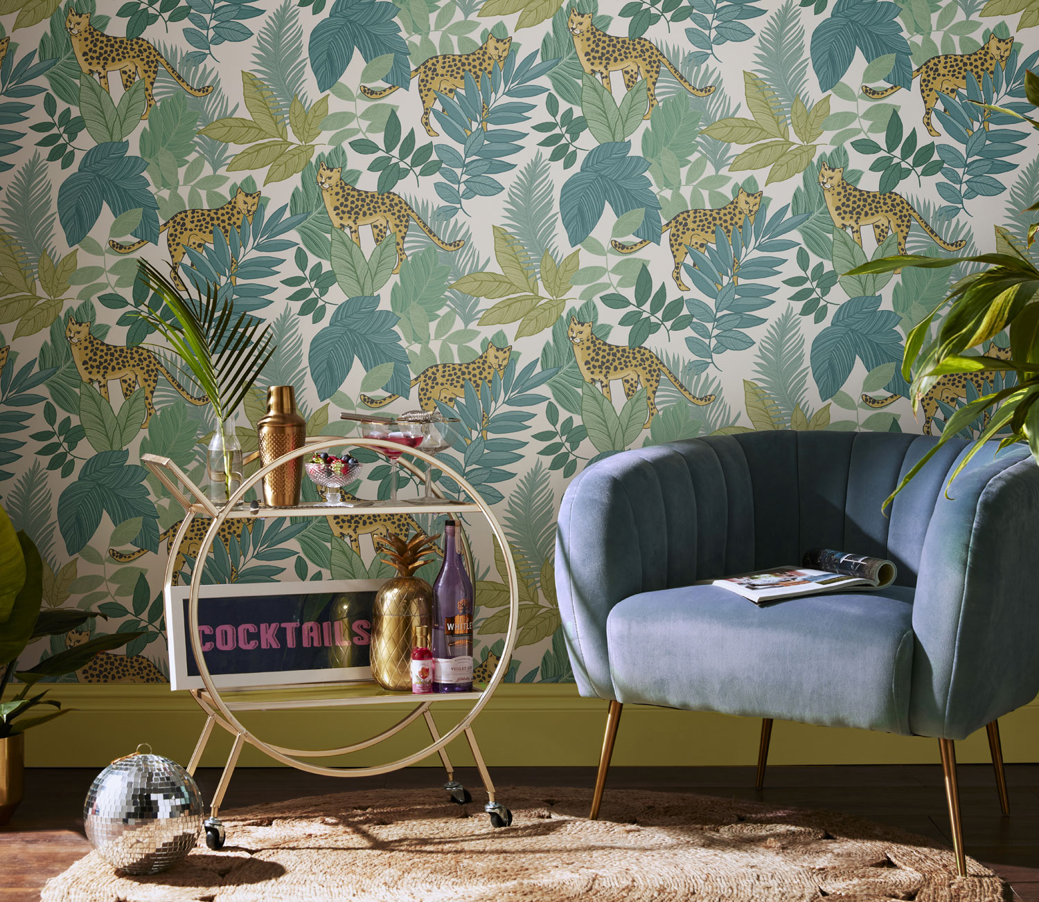 In the wallpaper collection you will find wallpapers with the motif of colorful flowers with tropical leaves, exotic flowers with parrots and butterflies, but also retro geometric patterns in interesting pastel colors.