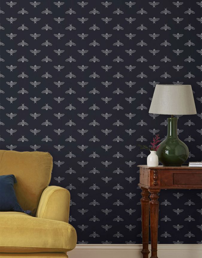 Blue wallpaper with bees, 118546, Joules, Graham&Brown