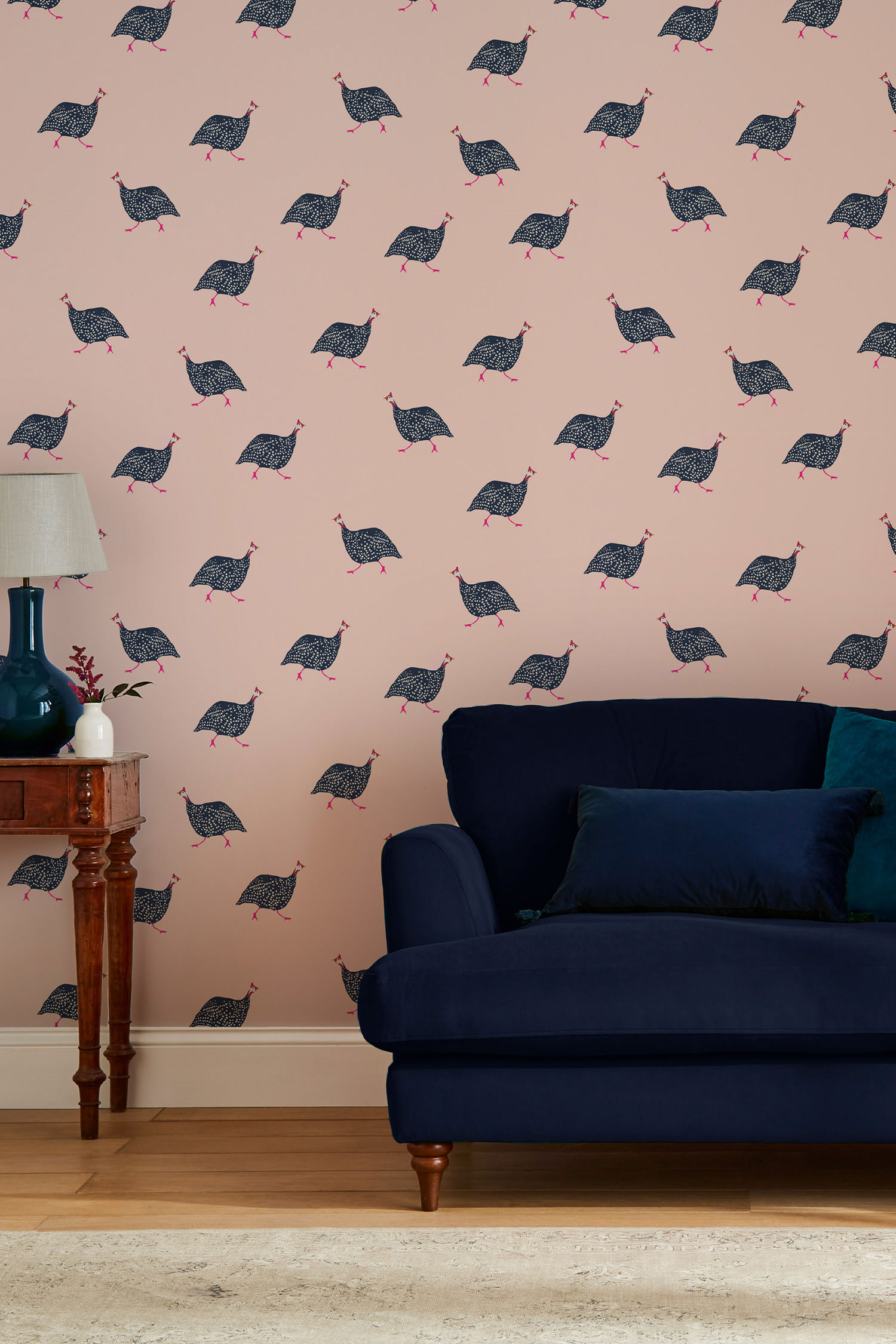 Pink wallpaper, Guinea fowl, 118566, Joules, Graham&Brown