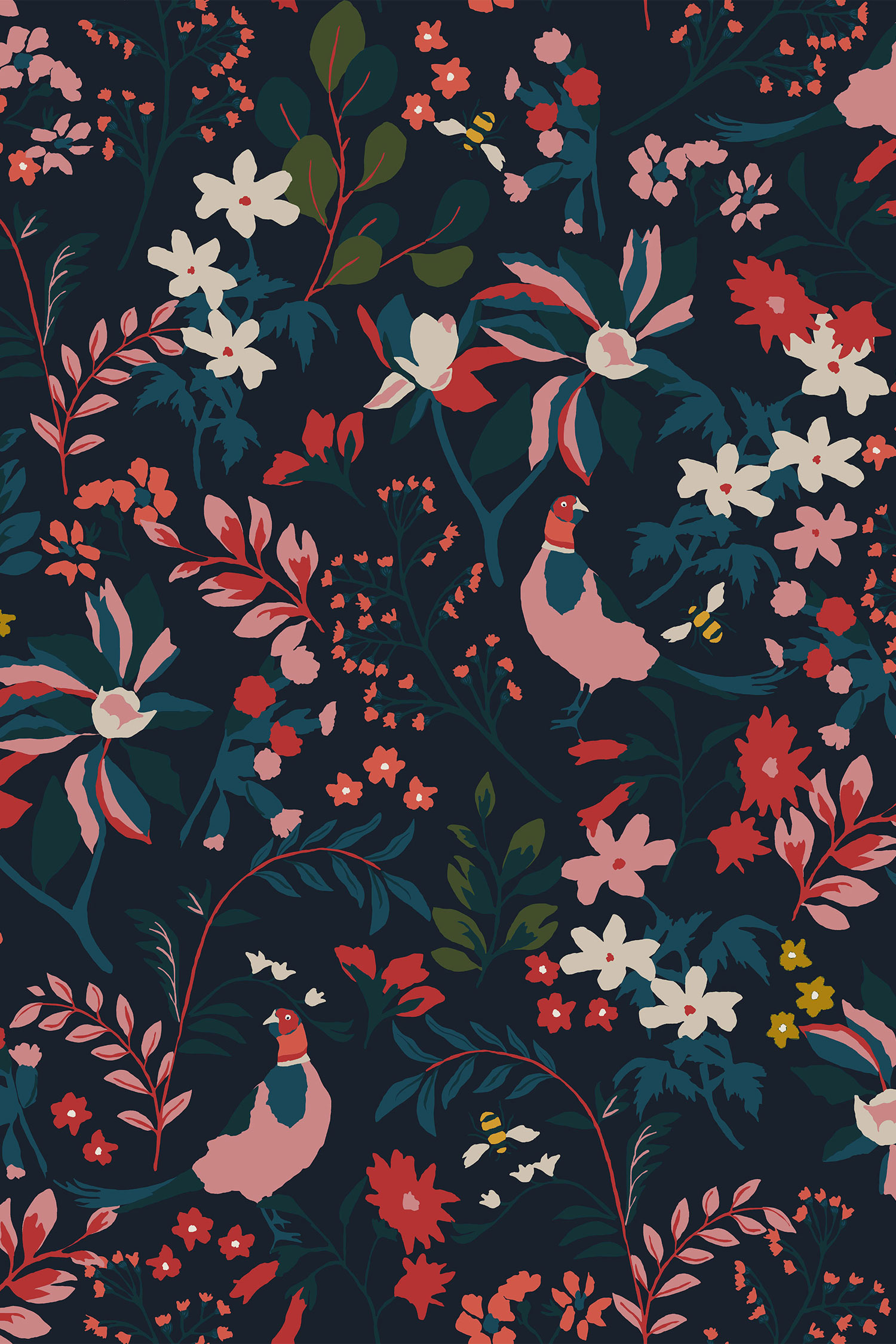 Floral wallpaper with pheasants and bees 118568, Joules, Graham&Brown