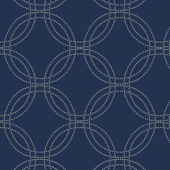 Smooth blue non-woven wallpaper with a golden geometric pattern.