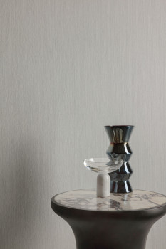 Grey-beige non-woven wallpaper with vinyl surface, embossed grooved texture.