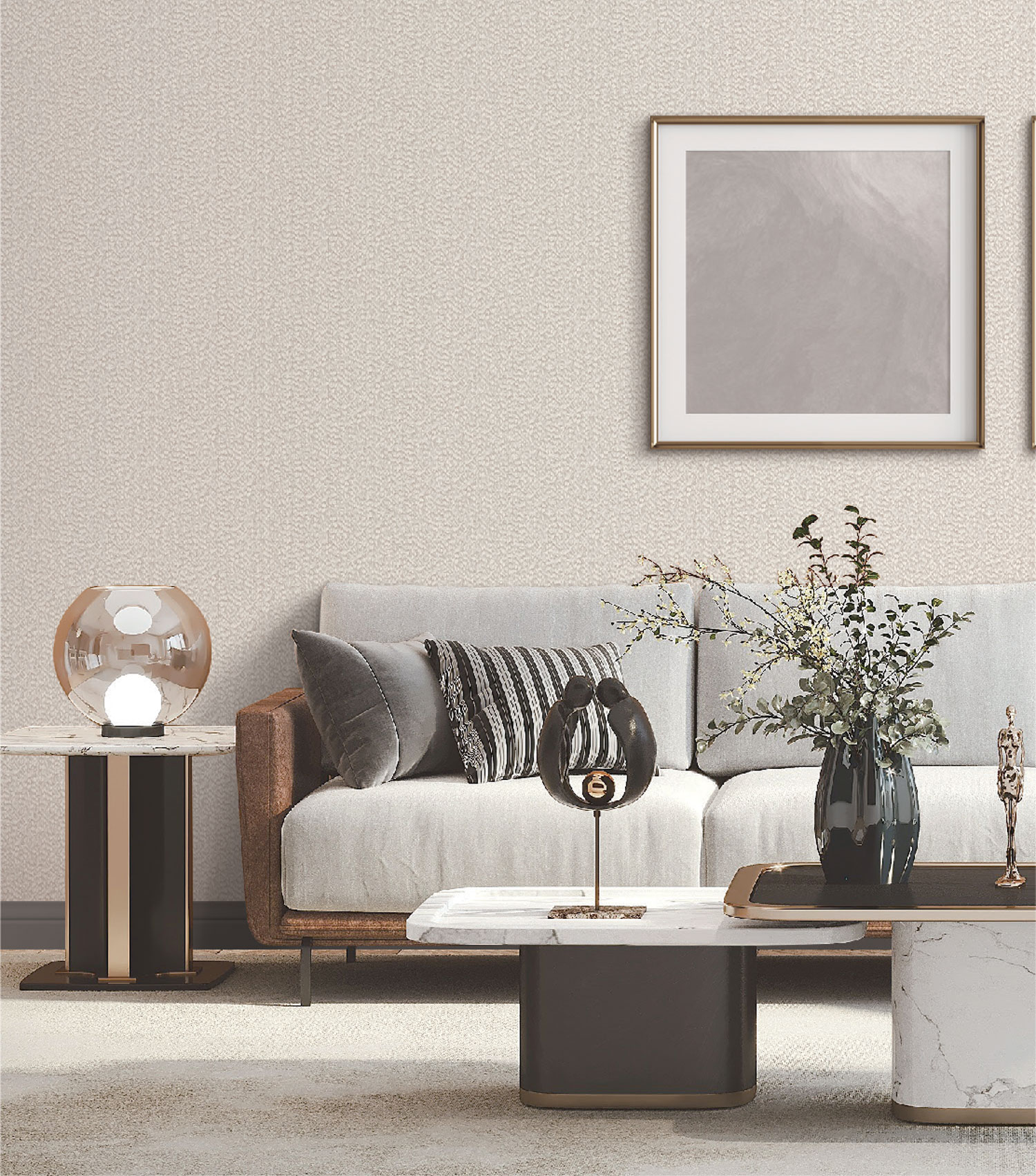 Wallpapers with geometric patterns are complemented by marble patterns, designed in colors to create a warm and pleasant atmosphere in your home. The end result is luxurious and elegant and suitable for a variety of interior styles.