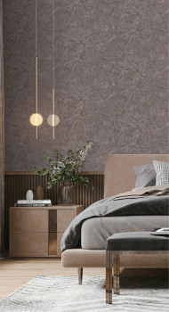 Embossed semi-gloss brown-bronze marbled non-woven wallpaper with vinyl surface, a hint of pink.