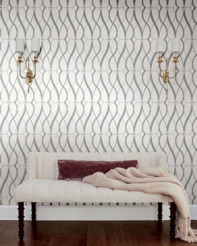White-silver geometric wallpaper, MD7173, Modern Metals, York