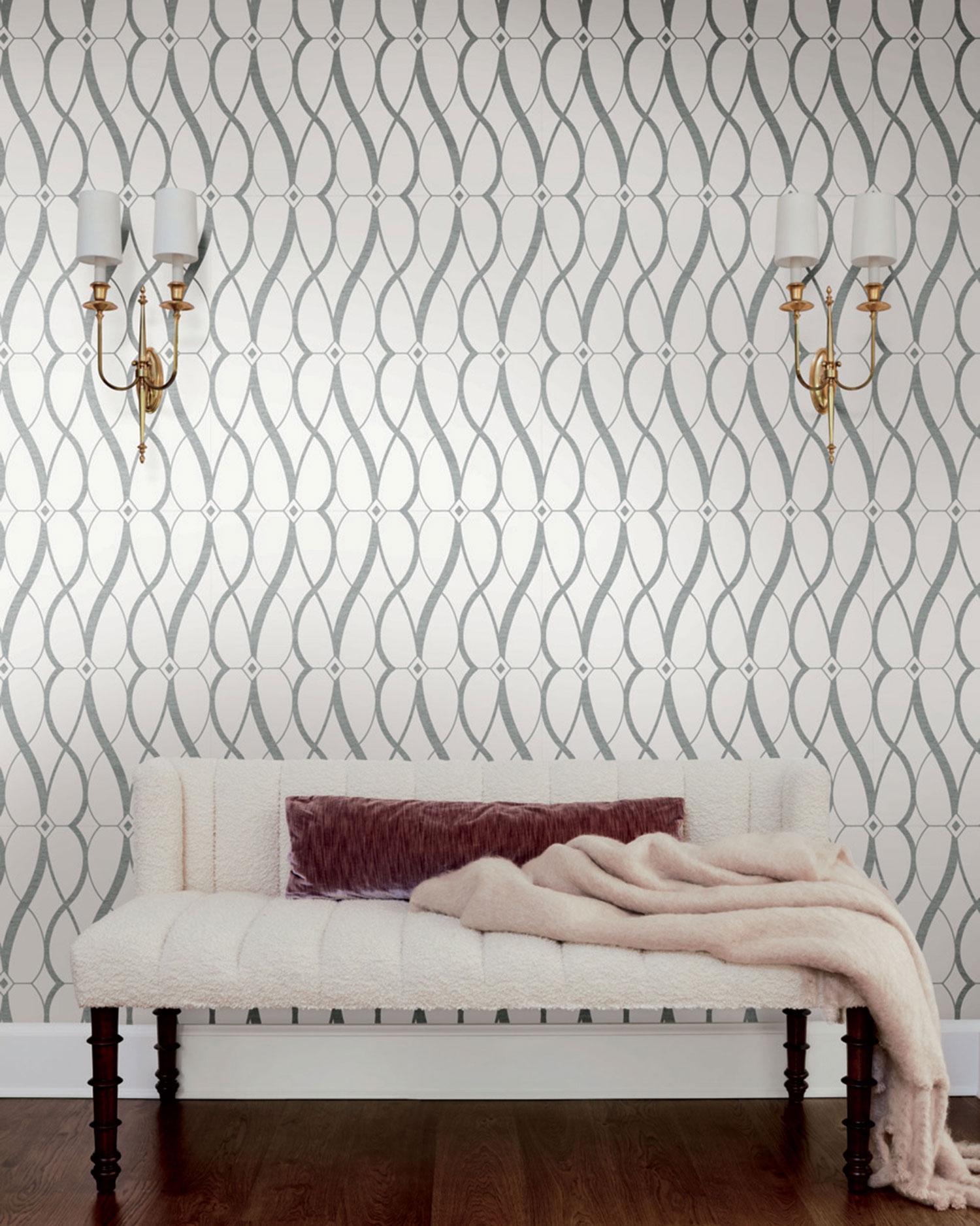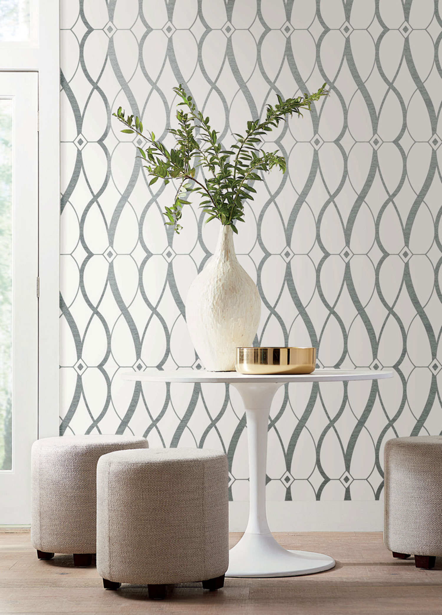 The new Modern Metals collection of non-woven wallpapers, created by Antonina Vella for the American manufacturer York, bringstimeless geometric patterns in pastel colours, through which glowing light streams through rich sheens.