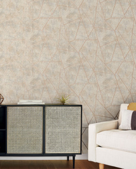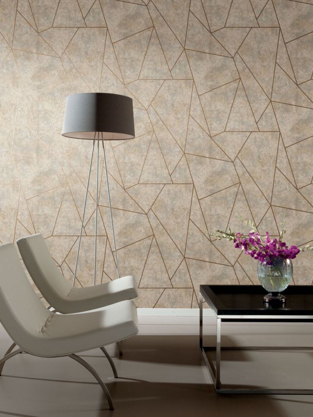 Gray-beige-gold geometric wallpaper, NW3504, Modern Metals, York