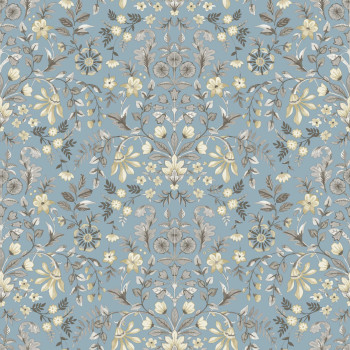 Blue wallpaper with floral ornamental pattern, 12326, Fiori Country, Parato