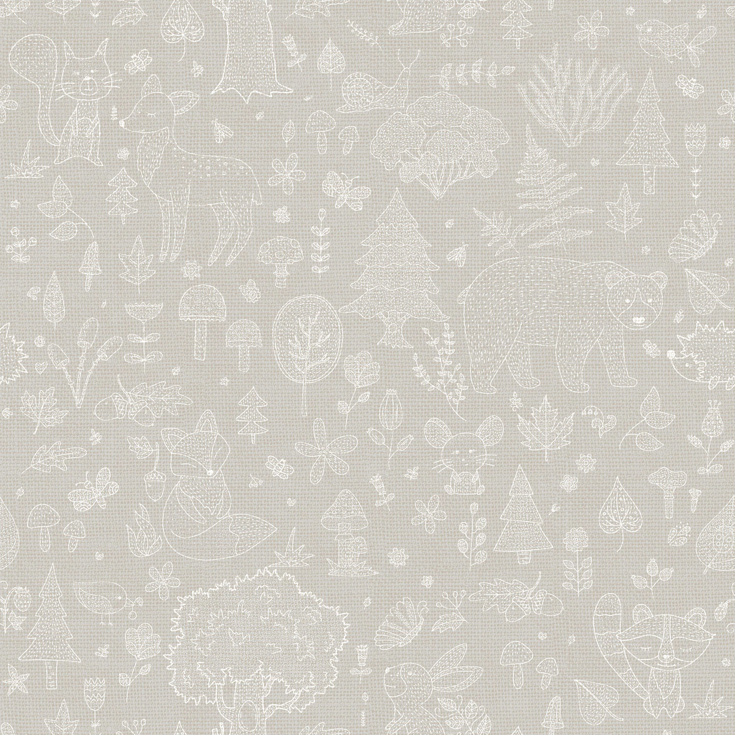 Gray children's wallpaper, animals, plants, 14807, Happy, Parato
