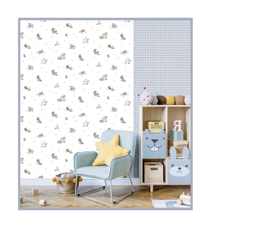 Who wouldn't want to experience an adventure with wallpapers with a pattern of flying balloons, animals from the farm and the forest or cute turtles. Wallpapers with children's patterns in pastel colors are complemented by wallpapers with a pattern of dots, cubes and plaster imitation.
