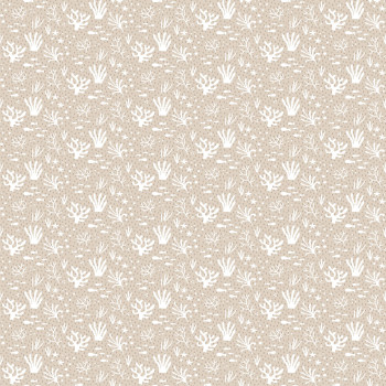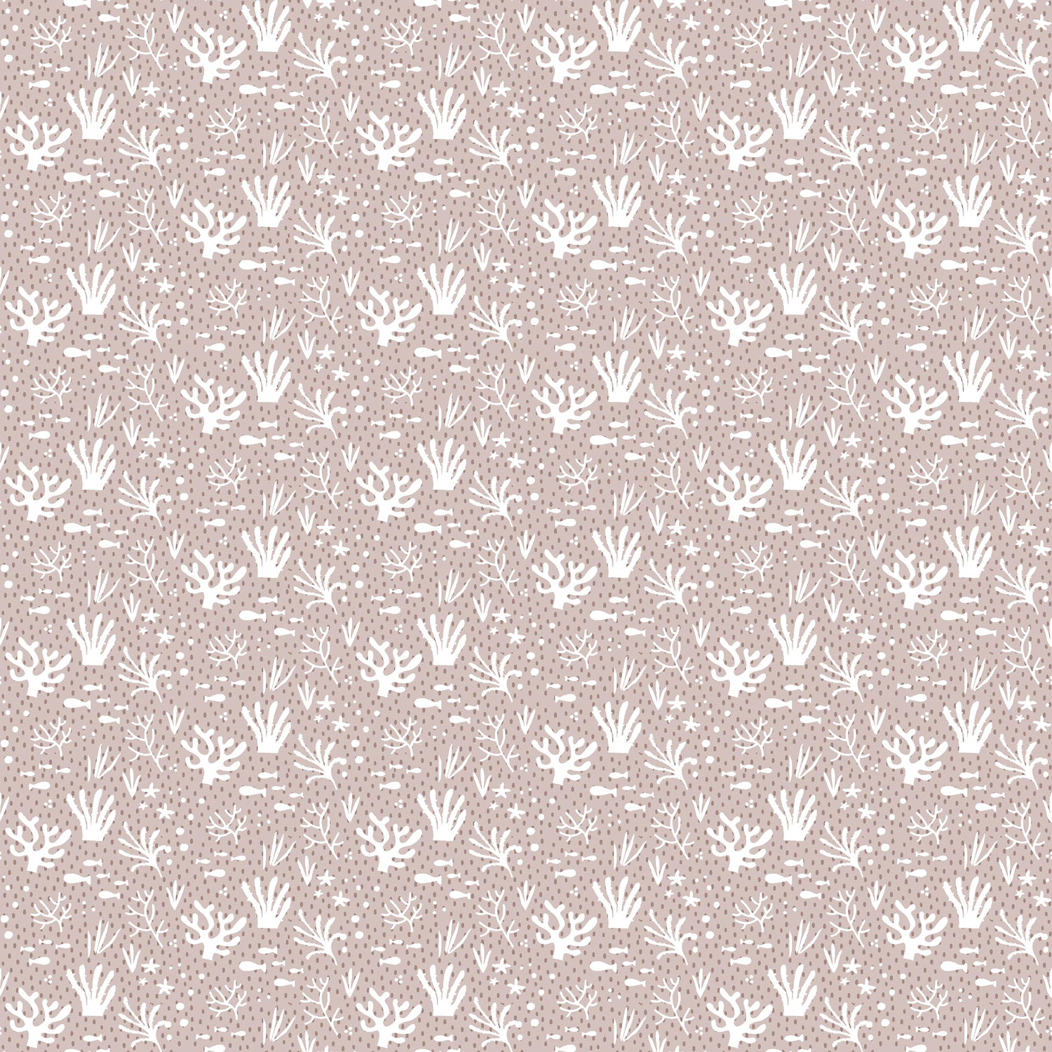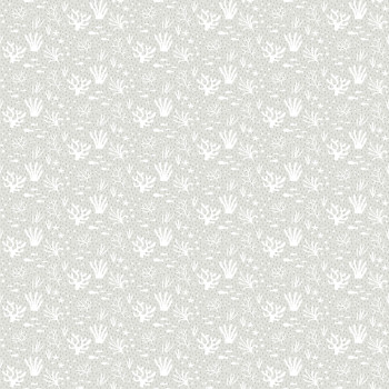 Gently embossed pink-white non-woven wallpaper, motifs of fish and aquatic plants.