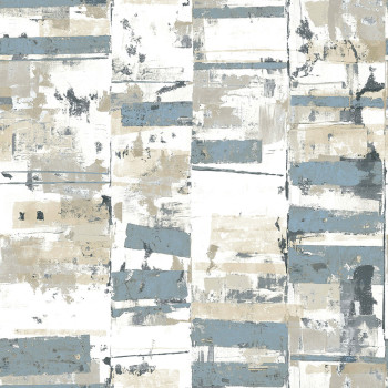 Smooth cream non-woven wallpaper, beige and semi-gloss blue areas. Interior photo is for illustration only.