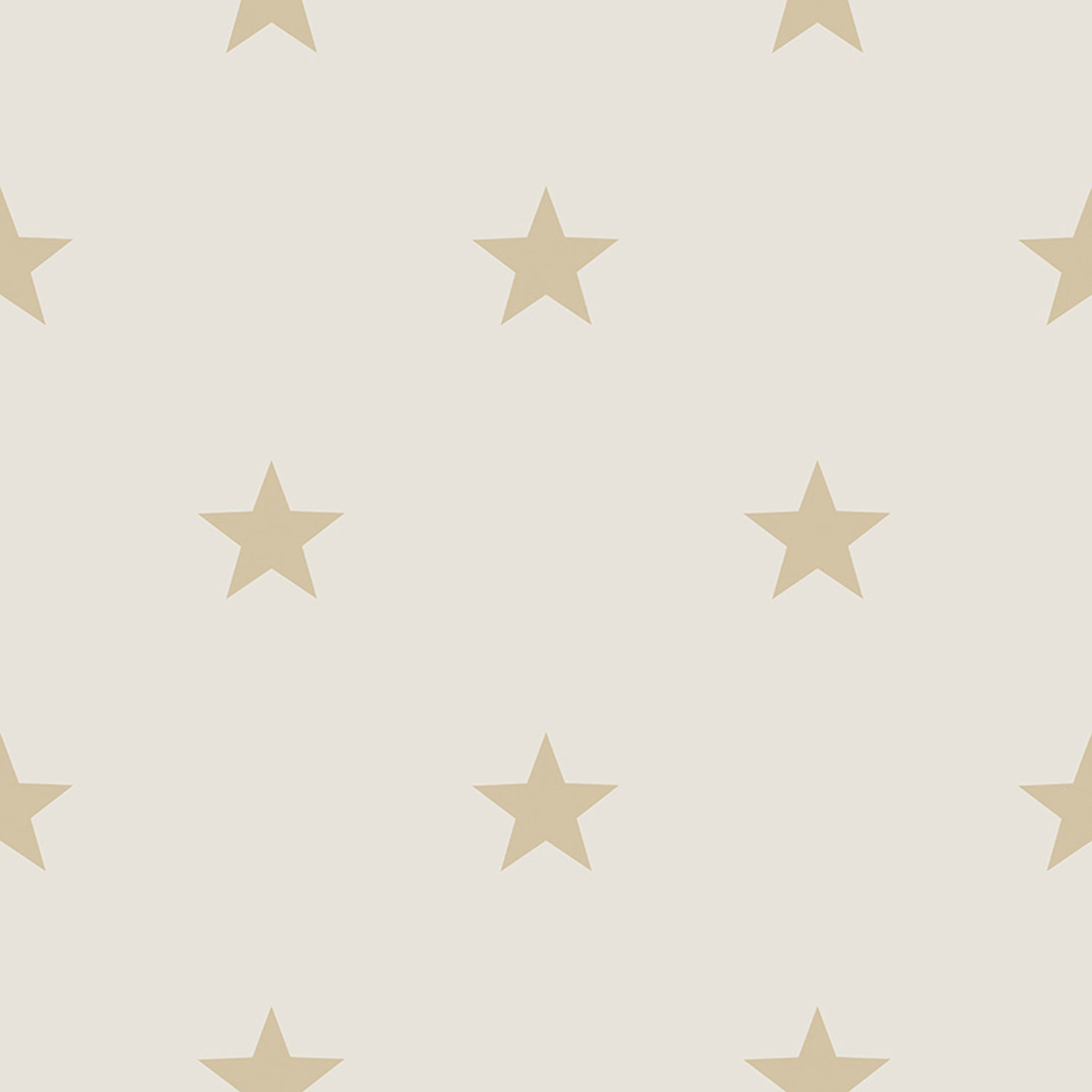 Smooth cream non-woven wallpaper, gold stars motif. Stars approx. 7cm. Interior photo is for illustration only.