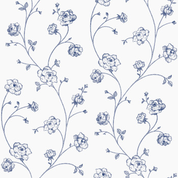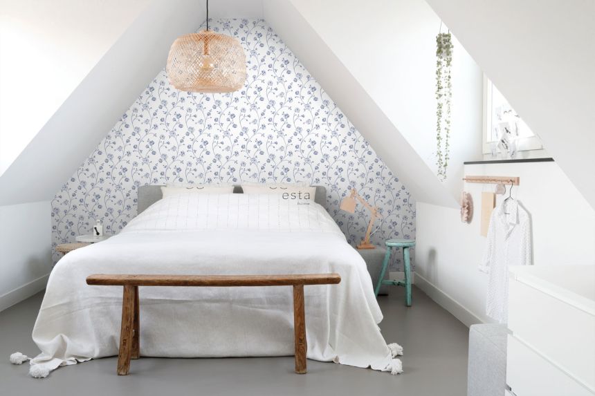 White-blue non-woven floral wallpaper, 139300, Vintage Flowers, Esta Home