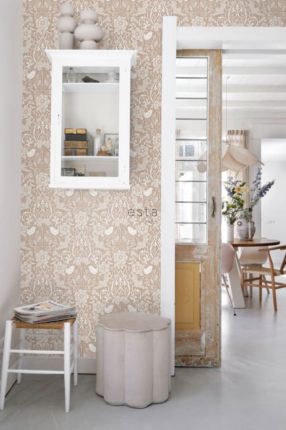 Brown wallpaper with plants and birds, 139324, Vintage Flowers, Esta Home