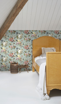 Green non-woven floral wallpaper, 139366, Vintage Flowers, Esta Home