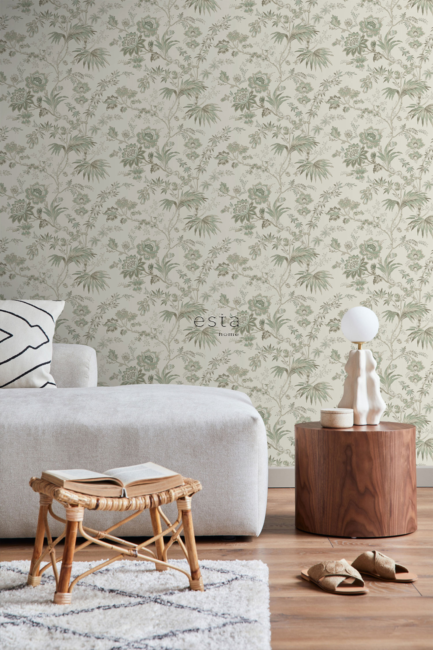 Green non-woven wallpaper, flowers, 139400, Vintage Flowers, Esta Home