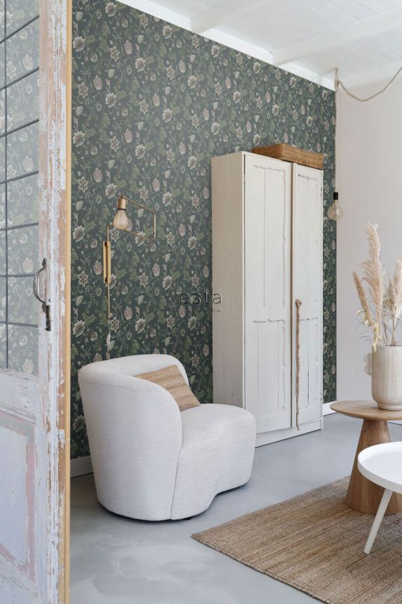 Green non-woven floral wallpaper, 139415, Vintage Flowers, Esta Home