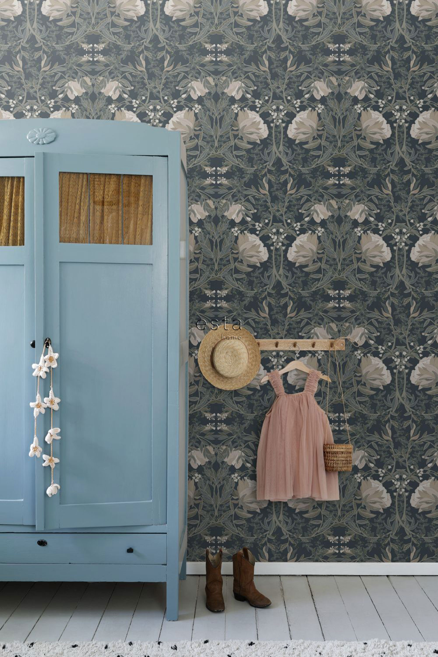 Imagine a collection that brings warmth and a welcoming atmosphere to your home throughout the year. Vintage Flowers by ESTA home is just that. The variety of beautiful floral wallpapers in this collection celebrates natural beauty, bringing comfort and tranquility to every room. Decorative motifs from the Art Nouveau period, lush roses, and cheerful wildflowers represent a contemporary take on traditional patterns while reflecting fashionable, pastel, and powder shades, including the color of the year 2024 Peach Fuzz, as well as earthy and muted colors.