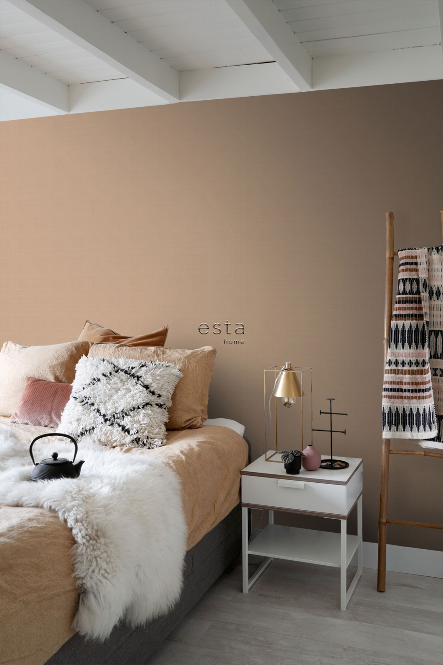 Brown smooth non-woven wallpaper, subtle grid pattern.