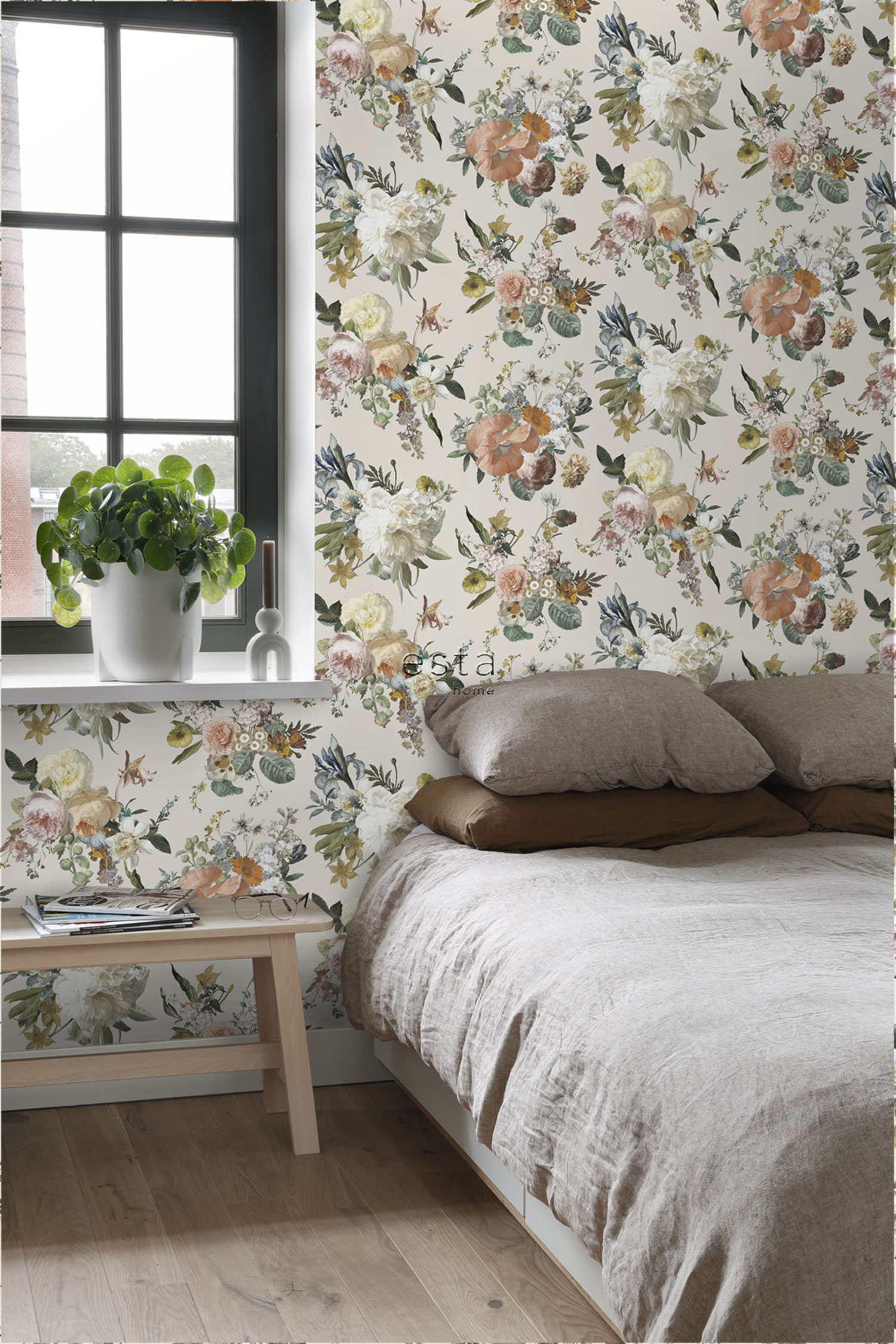 Cream non-woven floral wallpaper, 139544, Vintage Flowers, Esta Home