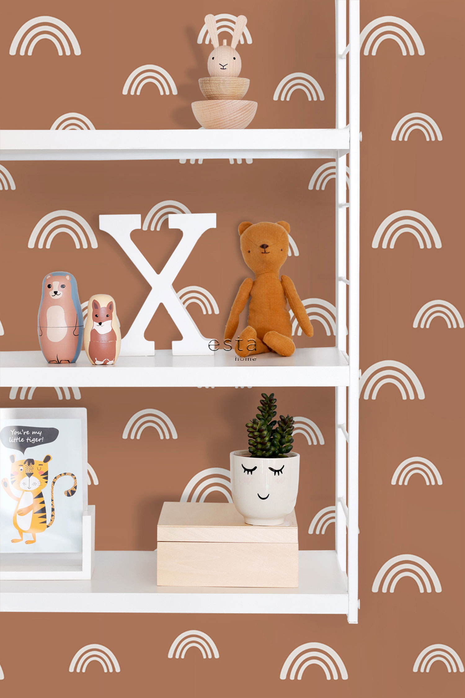 Brown non-woven wallpaper, rainbow, 139383, To the Moon and Back, Esta Home