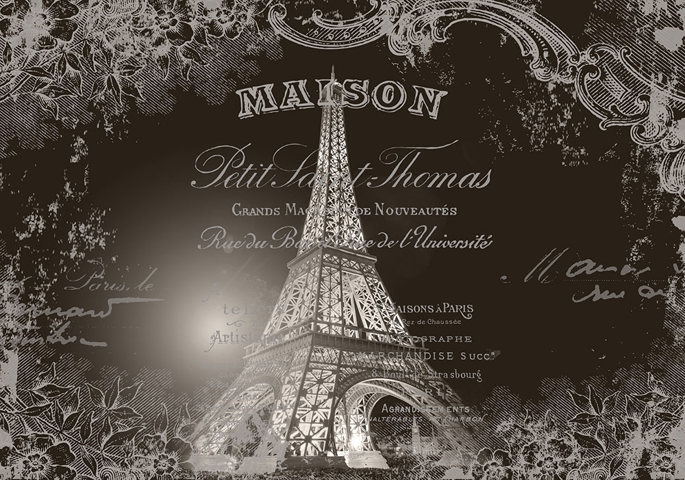 Something for France, and the famous Tour Eiffel, lovers ... Paris on a wallpaper. 4-pieces non-woven mural wallpaper.