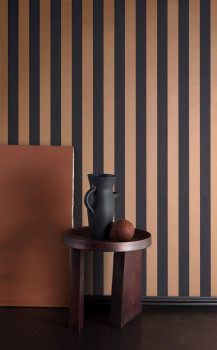 Smooth non-woven wallpaper, stripes in shades of black and bronze. Stripes 6.5cm
